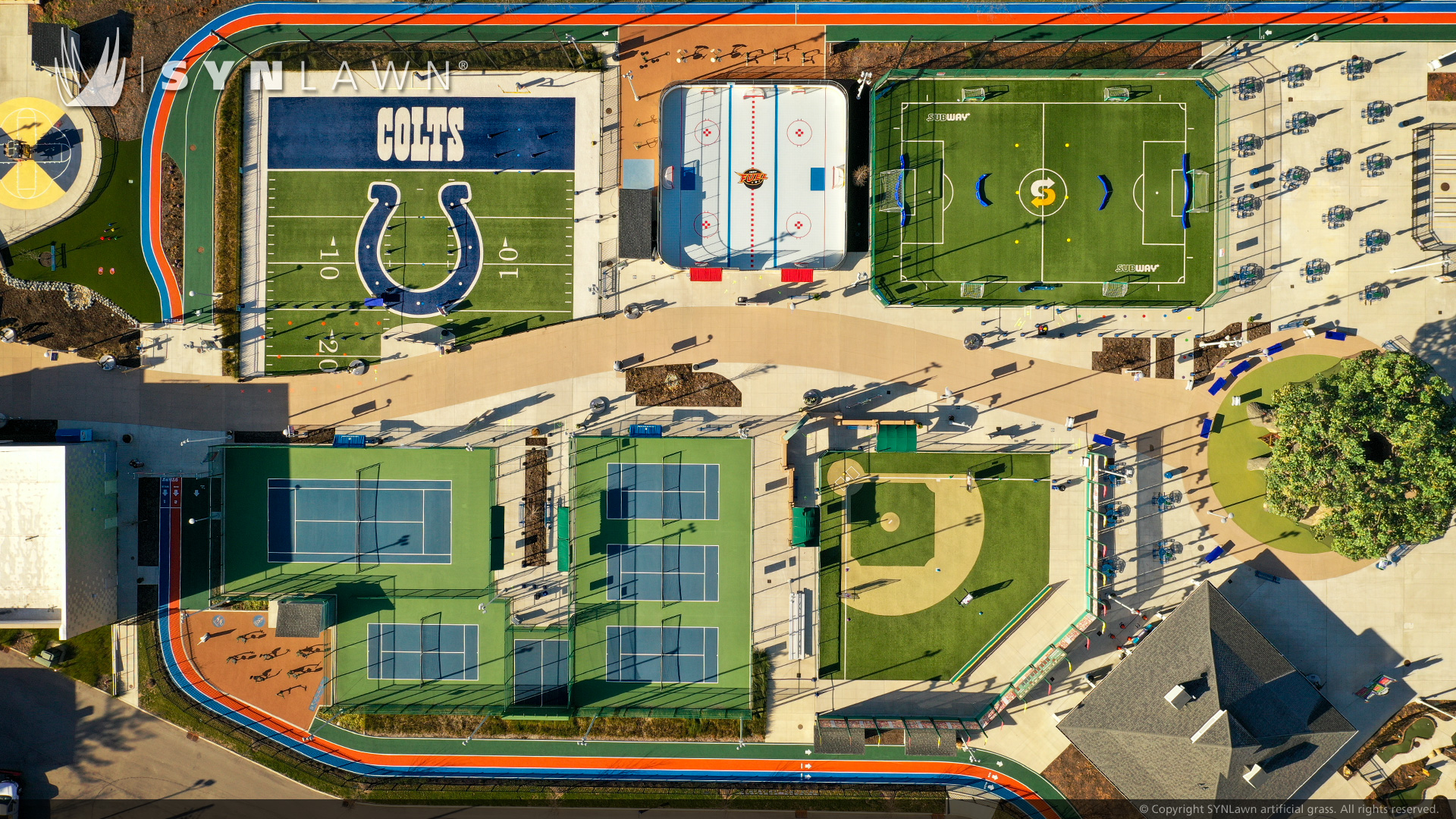 The Children's Museum of Indianapolis recently responded to alarming childhood and adult obesity rates by creating a new model of health and fitness for families called Riley Children's Health Sports Legends Experience. This permanent addition to the Children’s Museum features 7.5-acres of 12 outdoor sports experiences and 15,000 square feet of three indoor exhibits that encompass physical fitness. SYNLawn Indiana was hired to install 1.4 acres of sustainable, plant-based products to make part of the exhibit more inclusive, comfortable, and aesthetically pleasing.